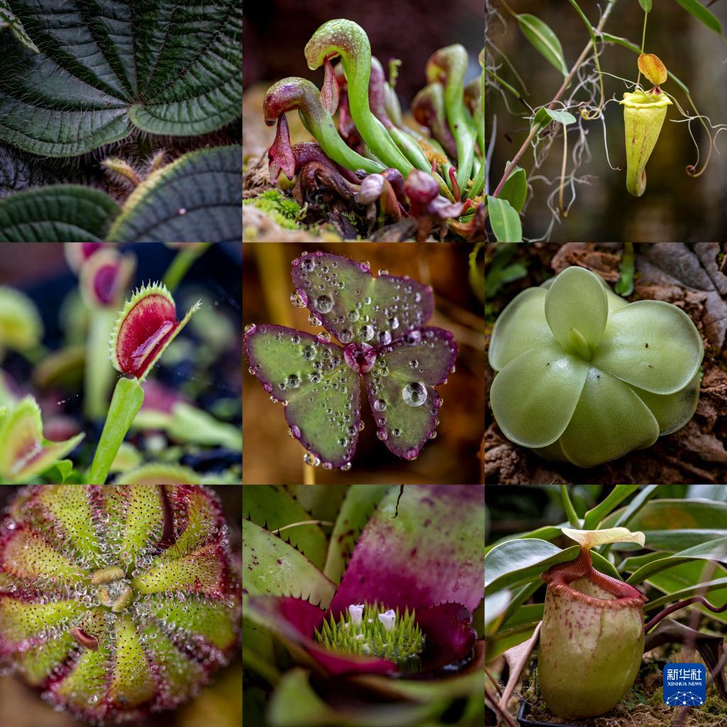 “扶荔宫”里展示的食虫植物(拼版照片,资料照片)。