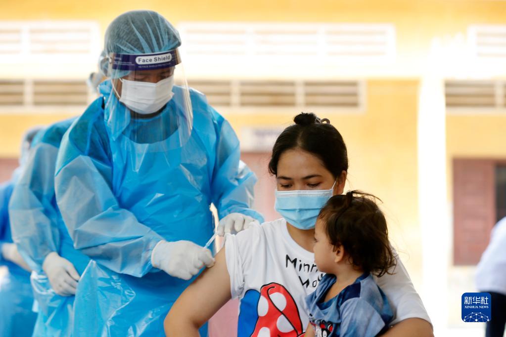 10月14日,一名女子在柬埔寨金边接种科兴新冠疫苗。