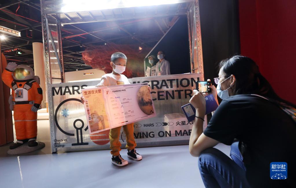 当日,上海天文馆(上海科技馆分馆)首个临展——情境式原创展览“生活在火星”开幕。展览以未来人类生活在火星为主线,将科学与艺术有机结合,从衣、食、住、行出发,带领公众沉浸式体验火星上的生活。