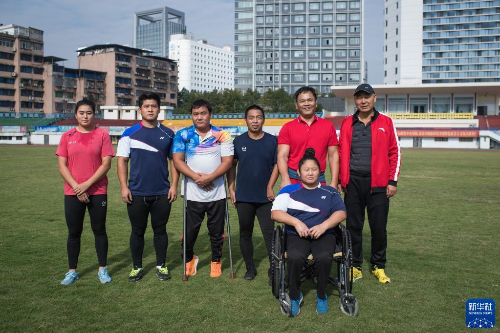 田龙兵(后排右二)与队友、教练合影(10月12日摄)。新华社记者 肖艺九 摄
