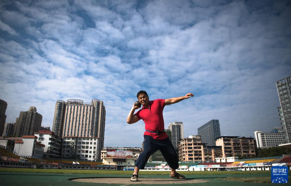 田龙兵在进行铅球项目训练(10月12日摄)。新华社记者 肖艺九 摄