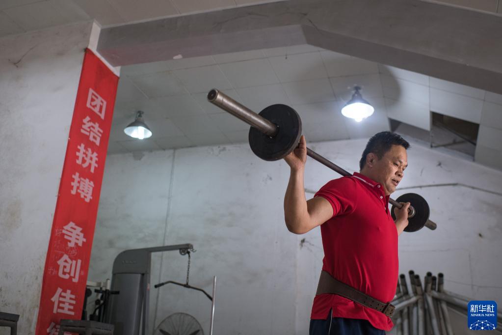 田龙兵在进行力量训练(10月11日摄)。新华社记者 肖艺九 摄