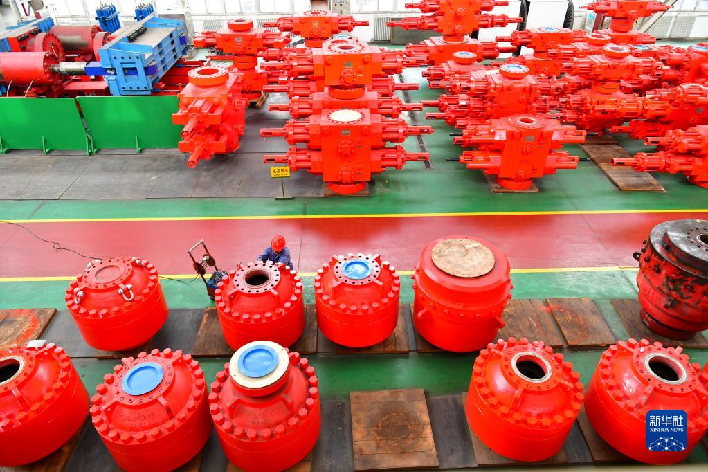 10月15日,位于河北省任丘市的河北华北石油荣盛机械制造有限公司工人在检查产品部件。