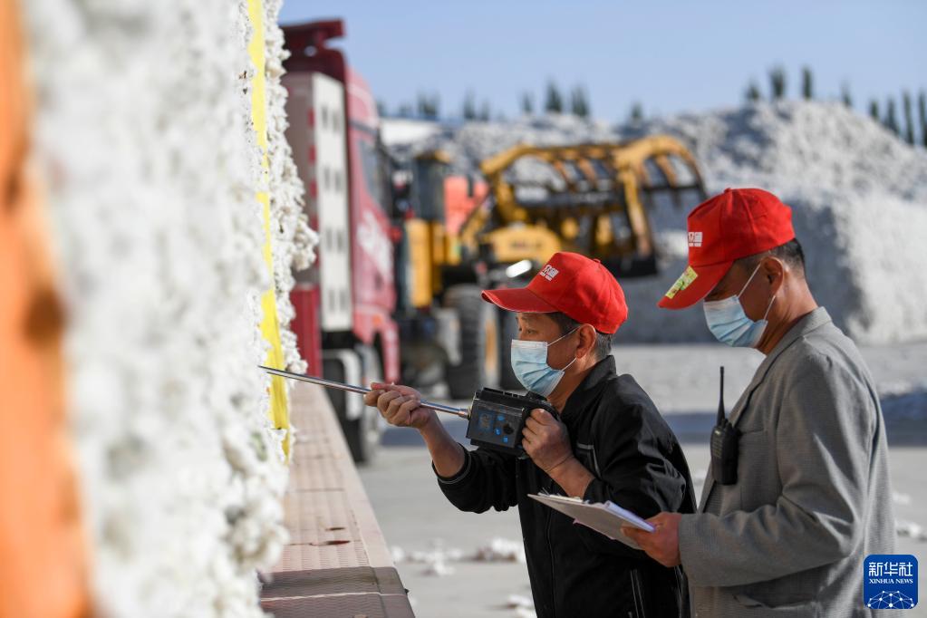 在尉犁县众望纺织有限公司,工作人员在检测新棉质量(10月14日摄)。新华社记者 赵戈 摄