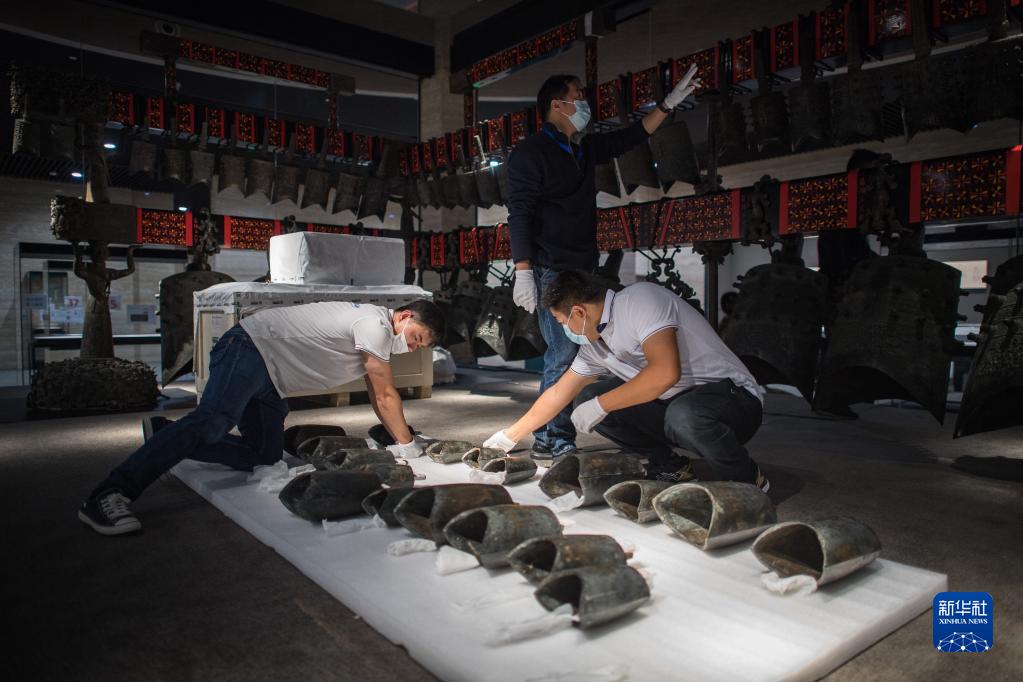 10月15日,工作人员准备对曾侯乙编钟进行调试安装。新华社记者 肖艺九 摄