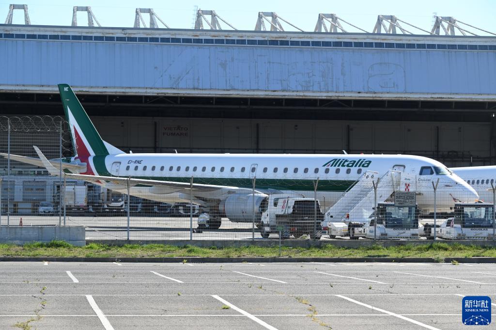 10月15日,意大利航空运输公司的一架飞机停在罗马菲乌米奇诺机场的停机坪上。