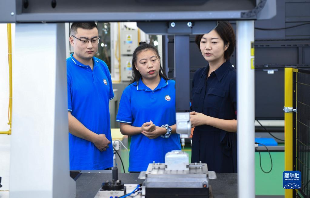 10月14日,在深圳职业技术学院,唐雪梅(中)学习智能制造相关课程。 新华社记者 毛思倩 摄