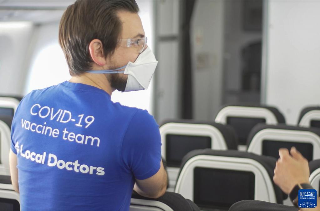 10月16日,在新西兰奥克兰机场,医务人员在一架被临时改装成疫苗接种点的新西兰航空公司客机内工作。