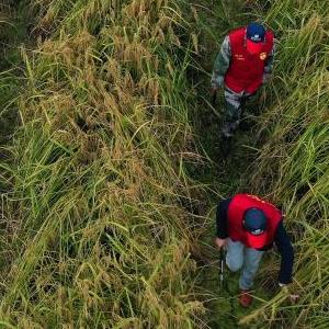当日是世界粮食日,浙江省建德市三都镇新和村袁隆平生态水稻种植基地试种的“巨型稻”迎来丰收并开镰收割。这里种植的“巨型稻”是由中国科学院夏新界研究员团队研发,2021年选择在浙江省建德市三都镇试种并取得成功。“巨型稻”的特点是长得高大,稻株粗壮挺拔,平均每株水稻植株高达1.8米左右,高度一般是常规稻的两倍。穗长粒多,单穗最高实粒数达到500粒左右。预计亩产可达900至1000公斤,较普通稻亩产增加200至300公斤。三都镇新和村的这块试验田原本是一块抛荒田,今年村里集中流转后种植了“巨型稻”,计划2022年在全镇继续扩大“巨型稻”种植面积,帮助农民增产增收,助力共同富裕。