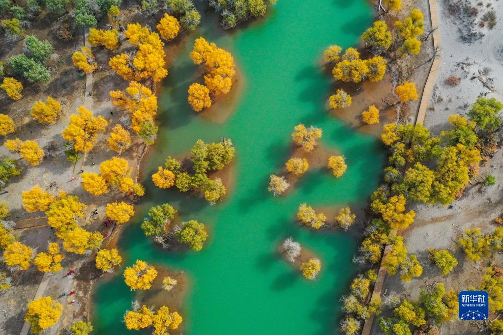 这是10月13日拍摄的额济纳旗胡杨林(无人机照片)。