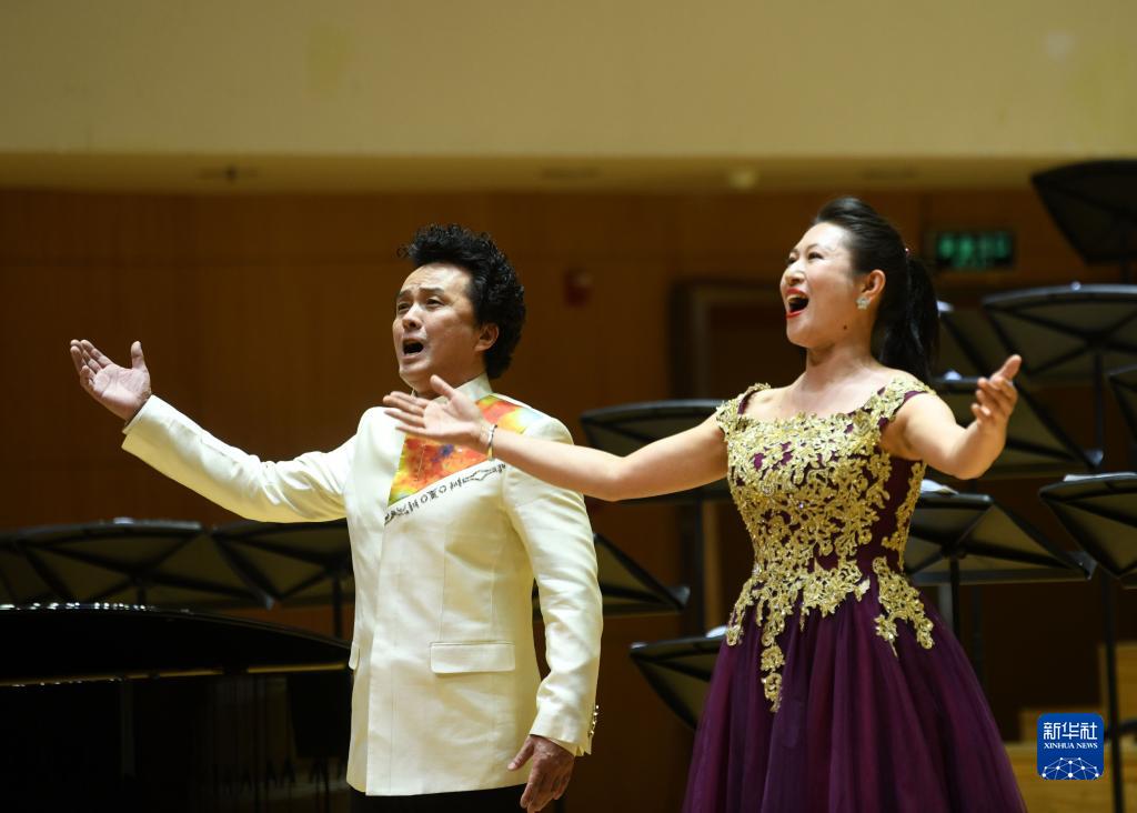 10月16日,张天甫(左)、王丹表演男女声二重唱《欢聚一堂》。