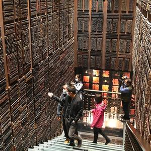 10月16日,游客在榆林非物质文化遗产展示馆参观。