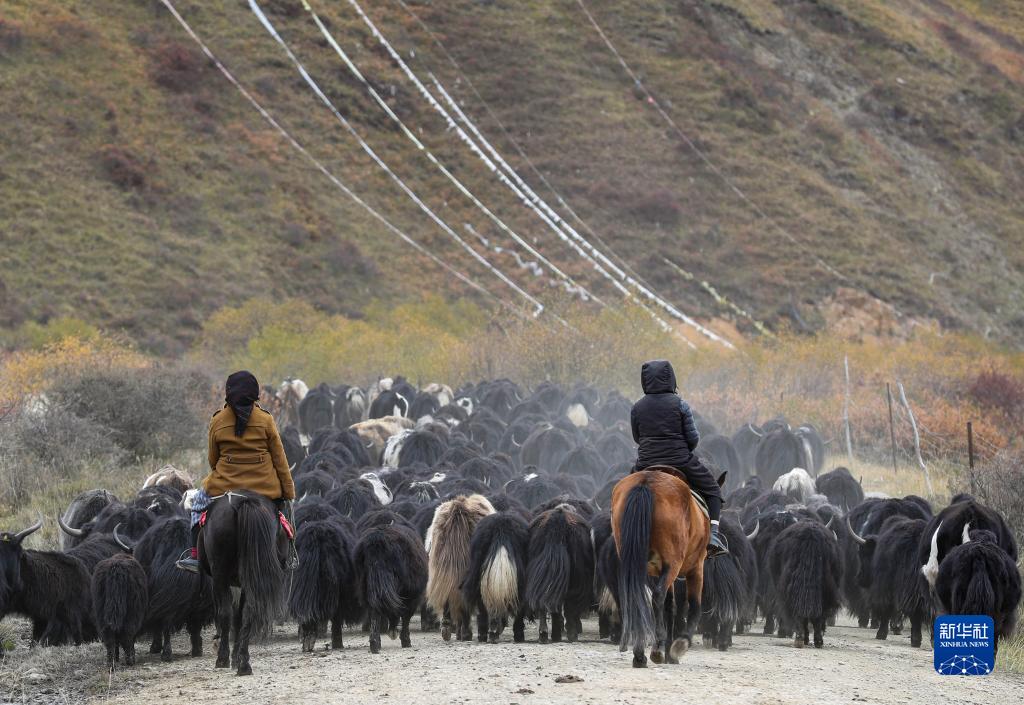 近日,随着天气转凉,川西北草原上的牧民们又开始了一年一度的牲畜冬季转场。当地藏牧民赶着大批牛、羊、马,从深山的夏季牧场回迁到交通方便、水草肥美的冬牧场轮牧。