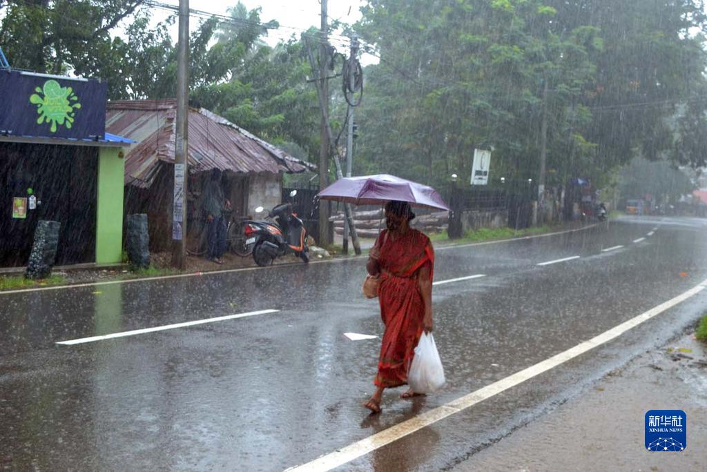 10月16日,印度南部喀拉拉邦首府提鲁沃嫩塔布勒姆的居民冒雨出行。