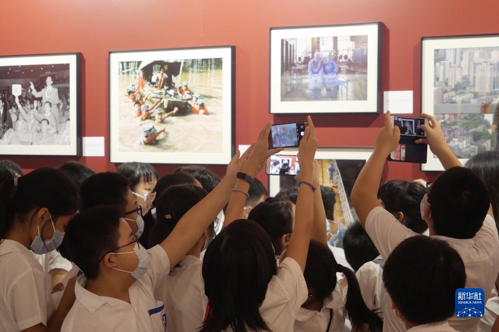 在香港中央图书馆,香港小学生在参观展览(10月11日摄)。新华社记者 王申 摄