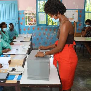 10月17日,一名选民在佛得角首都普拉亚一处投票站投票。