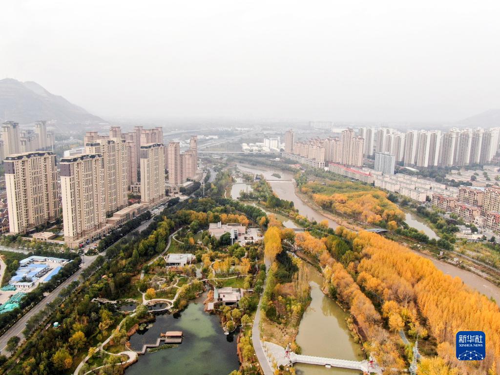 这是10月16日拍摄的青海西宁湟水国家湿地公园一角(无人机照片)。