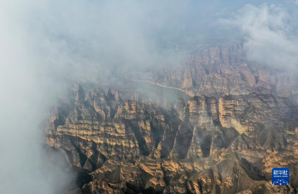 10月18日拍摄的甘肃炳灵丹霞国家地质公园景色(无人机照片)。