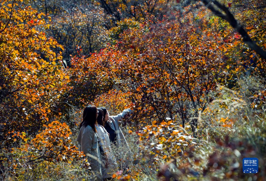 近日,河北省武安市山区的黄栌树进入观赏期,漫山的黄栌树有的泛红、有的泛黄,美如画卷,吸引游客前来观赏游玩。