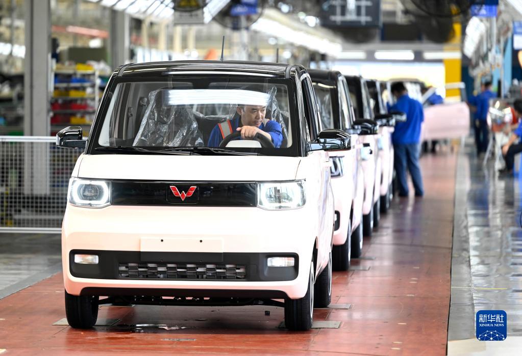 在广西柳州一家汽车企业,工人在新能源汽车生产线上忙碌(8月12日摄)。新华社发(黎寒池 摄)