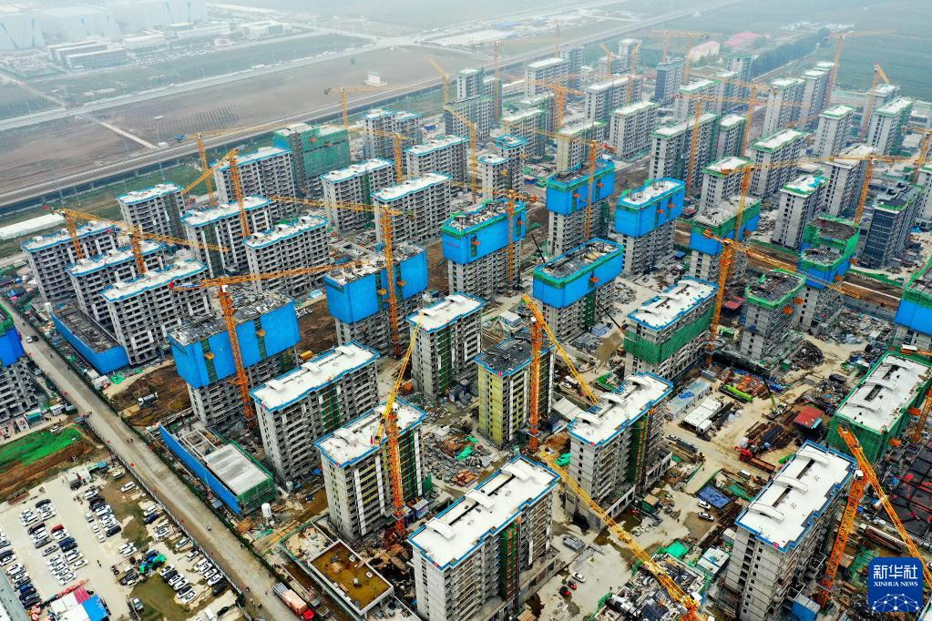 这是10月1日拍摄的雄安新区容西片区建设现场(无人机照片)。新华社记者 牟宇 摄