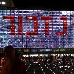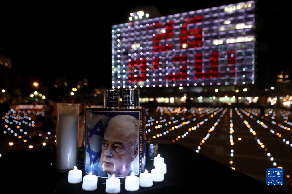 10月18日,在以色列特拉维夫,人们点燃蜡烛纪念前总理拉宾遇刺26周年。