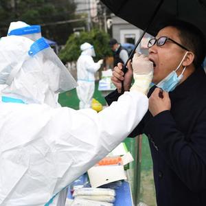 10月19日,在兰州市城关区民主西路小学核酸检测点,医务人员为居民做核酸检测。