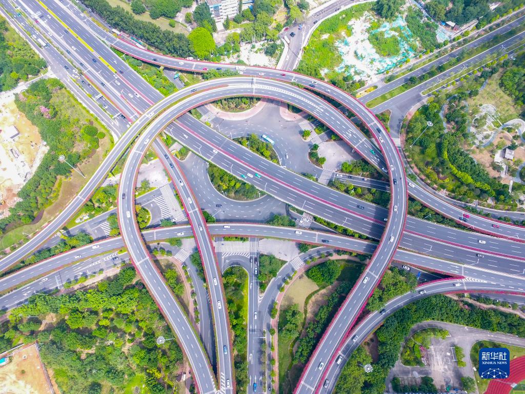 10月19日,车辆行驶在福州市双湖互通高架桥上(无人机照片)。新华社发(周义 摄)