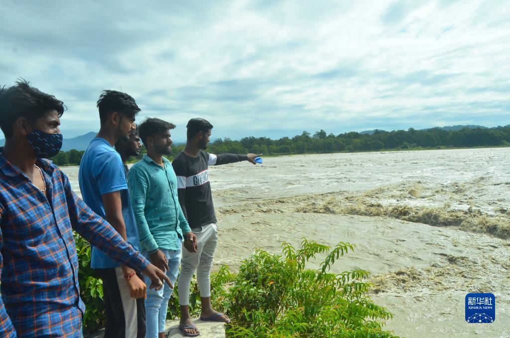 10月19日,人们在印度北阿肯德邦的赫里德瓦尔看着水位上涨的恒河。