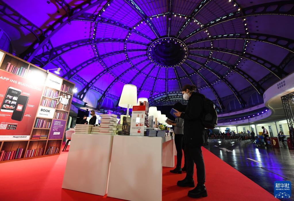 10月19日,嘉宾在德国法兰克福书展上阅读书籍。