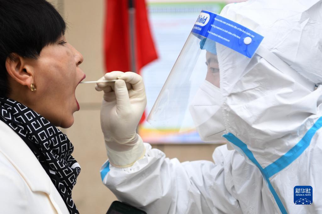 10月20日,市民在兰州市城关区新增的免费核酸检测点接受核酸采样。