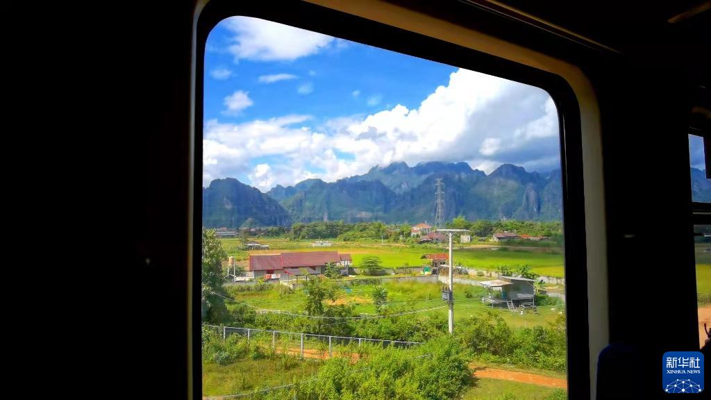 这是10月20日在中老铁路首趟动态检测列车上拍摄的老挝北部景致。