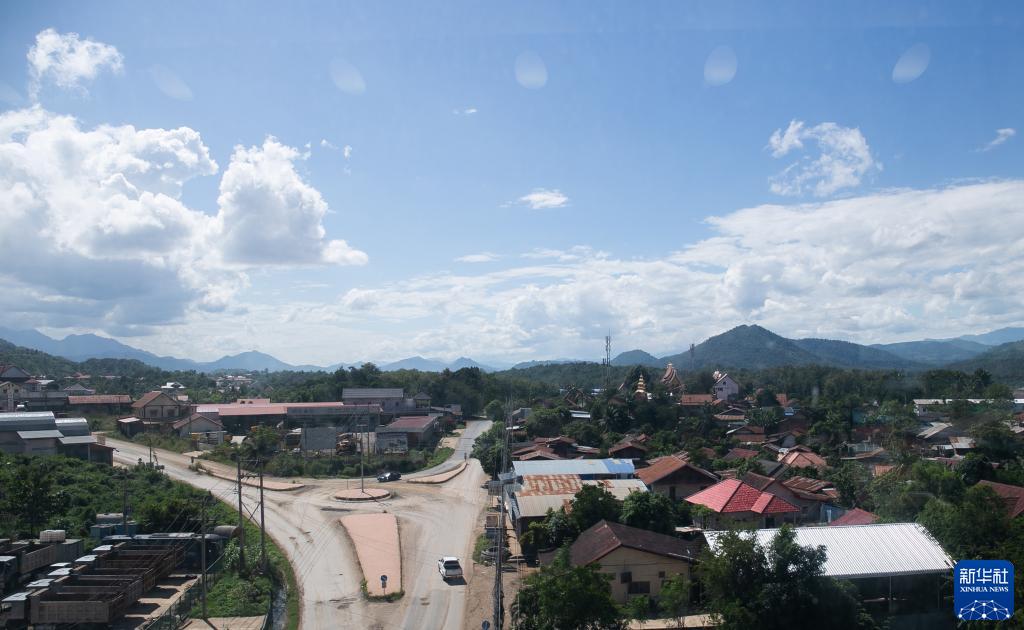这是10月20日在中老铁路首趟动态检测列车上拍摄的老挝北部古城琅勃拉邦北郊。