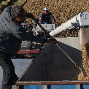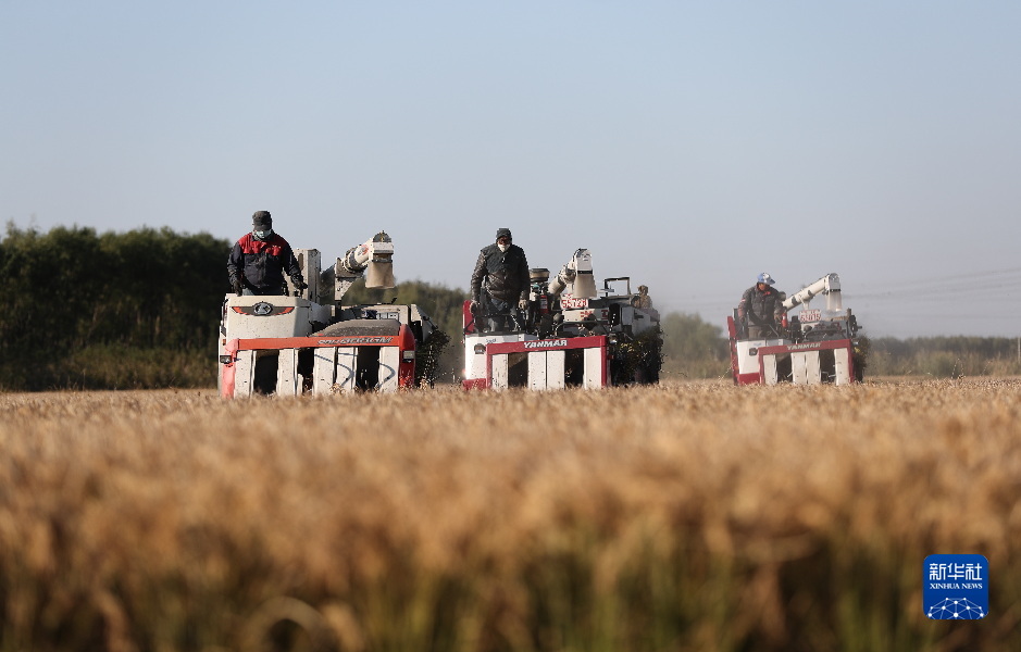 近日,河北省唐山市南部沿海地区的优质水稻陆续进入收获期,当地村民趁着晴好天气加紧收割,确保颗粒归仓。
