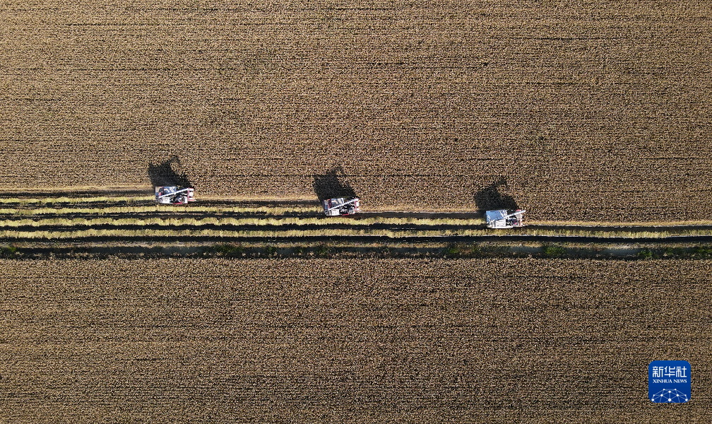 近日,河北省唐山市南部沿海地区的优质水稻陆续进入收获期,当地村民趁着晴好天气加紧收割,确保颗粒归仓。