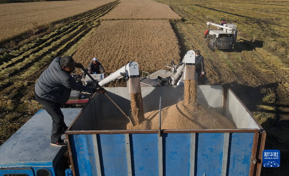近日,河北省唐山市南部沿海地区的优质水稻陆续进入收获期,当地村民趁着晴好天气加紧收割,确保颗粒归仓。