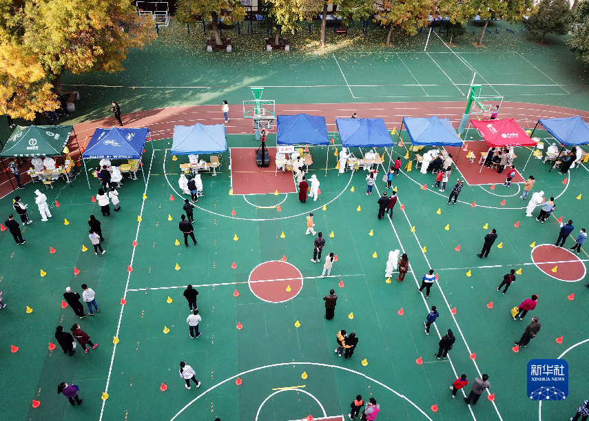 这是10月21日拍摄的兰州市水车园小学临时核酸检测点(无人机照片)。