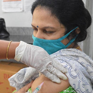 10月21日,一名女子在印度班加罗尔接种新冠疫苗。