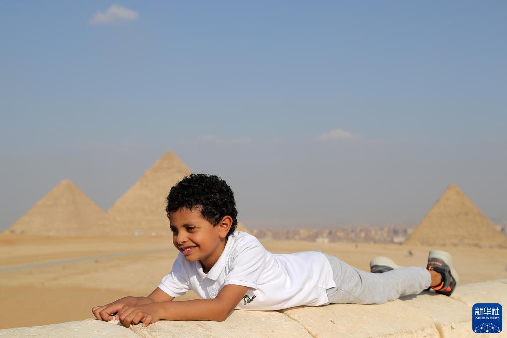 10月21日,一名男孩在埃及吉萨金字塔景区游玩。