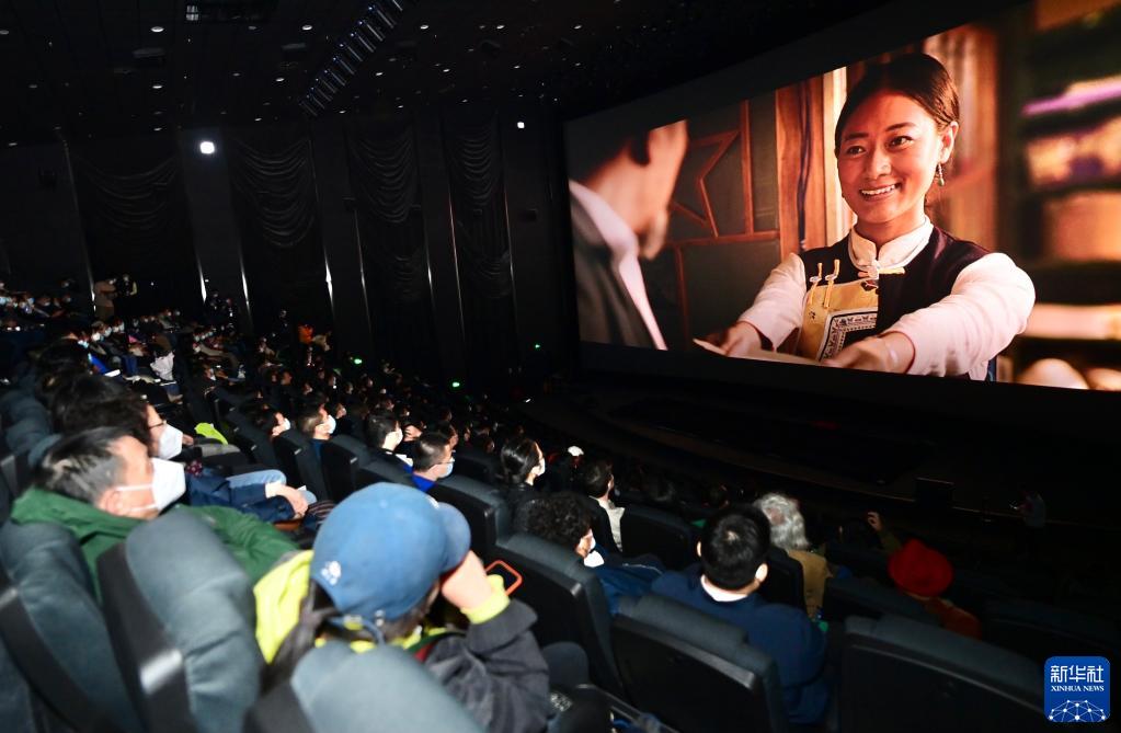 10月21日,在影片首映式上,观众在观看电影《信者》。