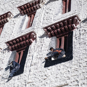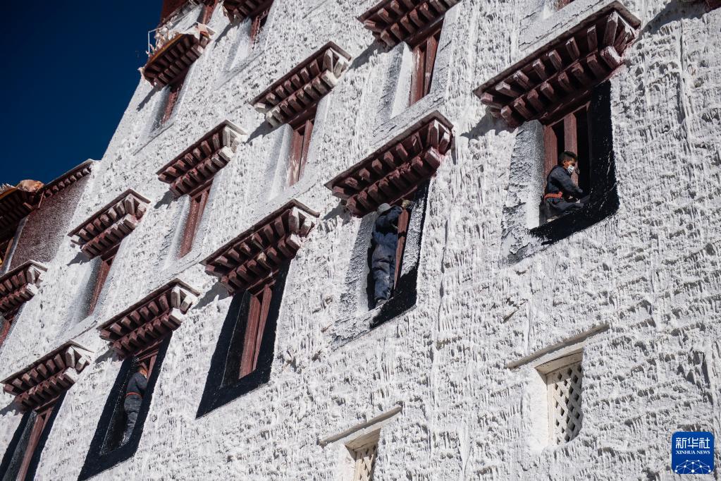 10月21日,工作人员进行布达拉宫年度粉刷工作。