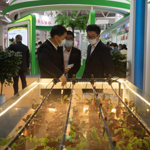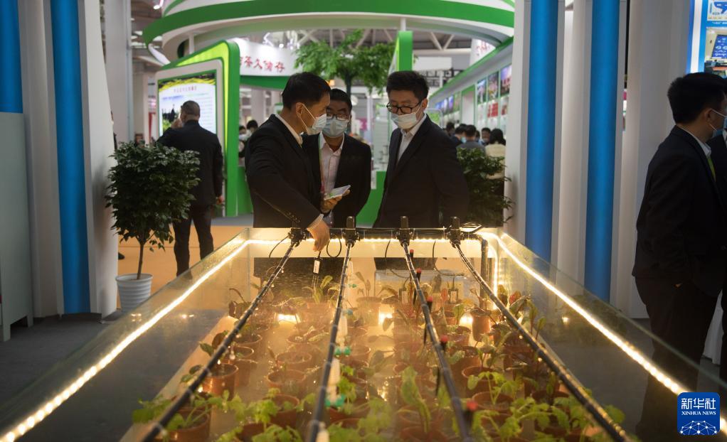 10月22日,在第28届中国杨凌农高会上,工作人员介绍污水循环利用智能化节水灌溉模型。