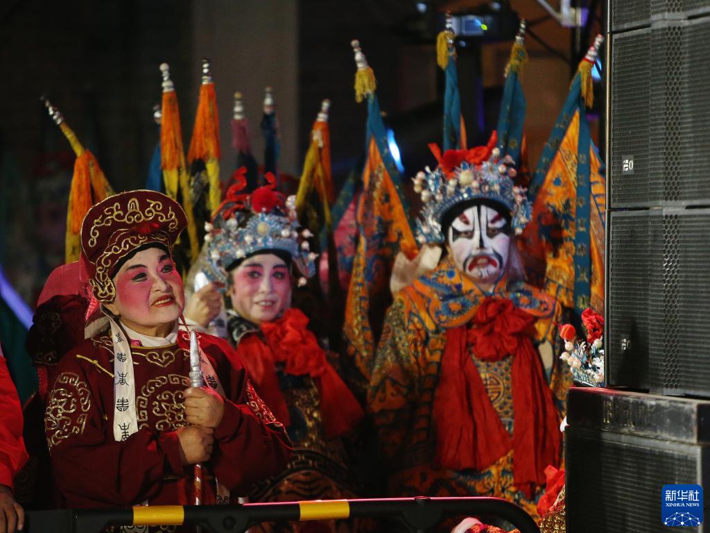 在大南坡村艺术中心广场,大南坡村怀梆剧团成员在舞台旁候场(10月21日摄)。