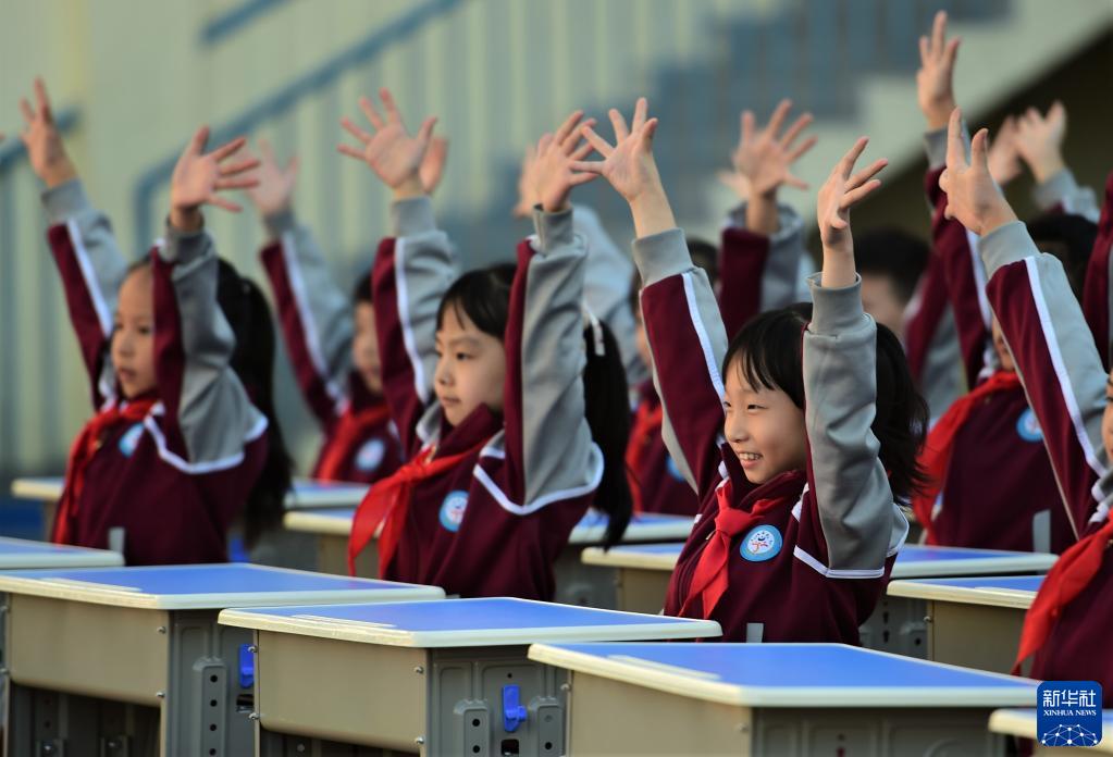 河北省沧州市车站小学把美育元素与体育锻炼相融合,为学生创编了一套“桌舞”,整套“桌舞”有十几个动作,不出教室在课桌旁就能完成,帮助学生调节情绪、活跃身心。