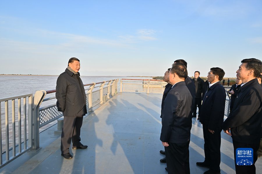 10月22日下午,中共中央总书记、国家主席、中央军委主席习近平在山东省济南市主持召开深入推动黄河流域生态保护和高质量发展座谈会并发表重要讲话。这是座谈会前,习近平20日下午在东营市黄河入海口考察。 新华社记者 李学仁 摄