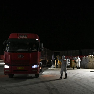 当日18时许,41301次列车到达内蒙古额济纳站。该车于当日凌晨从内蒙古巴彦淖尔市临河站发车,运载着价值100多万元的生活物资及各类医用防疫物资,这些物资由巴彦淖尔市临河区政府筹措并捐赠,支援额济纳旗疫情防控工作。新华社记者 贝赫 摄