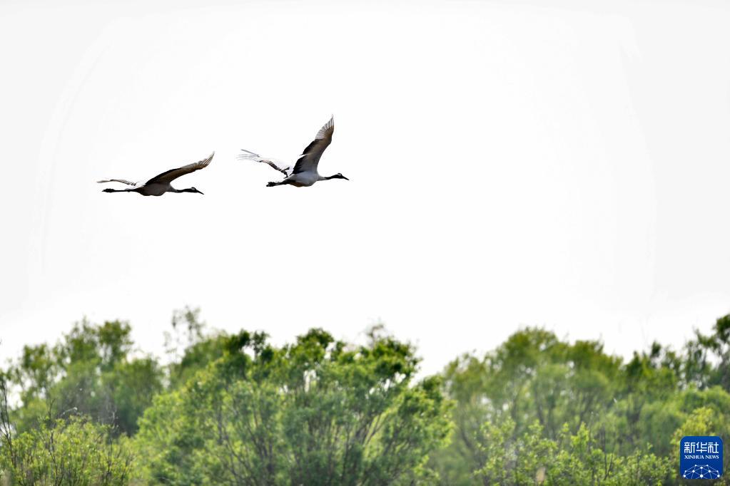 这是在山东黄河三角洲国家级自然保护区拍摄的丹顶鹤(5月13日摄)。