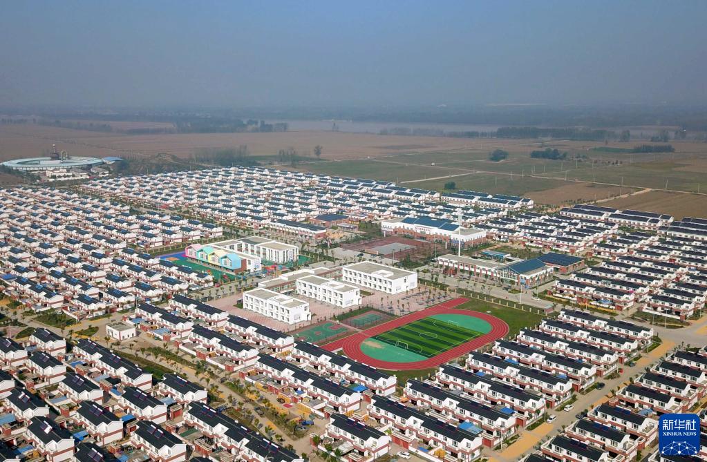 这是安置了6个自然村黄河滩区村民的山东省菏泽市鄄城县六合社区(10月13日摄,无人机照片),曾长期备受黄河水患侵害的14.6万“滩里人”在这里开启了新生活。作为黄河滩区居民迁建的主战场,菏泽市累计投入150多亿元,筑村台、建社区,并配套党群服务中心、学校、幼儿园、商超、乡村振兴创业车间等设施。如今,一幅“搬得出、稳得住、能致富”的乡村振兴新画卷在黄河滩区徐徐展开。