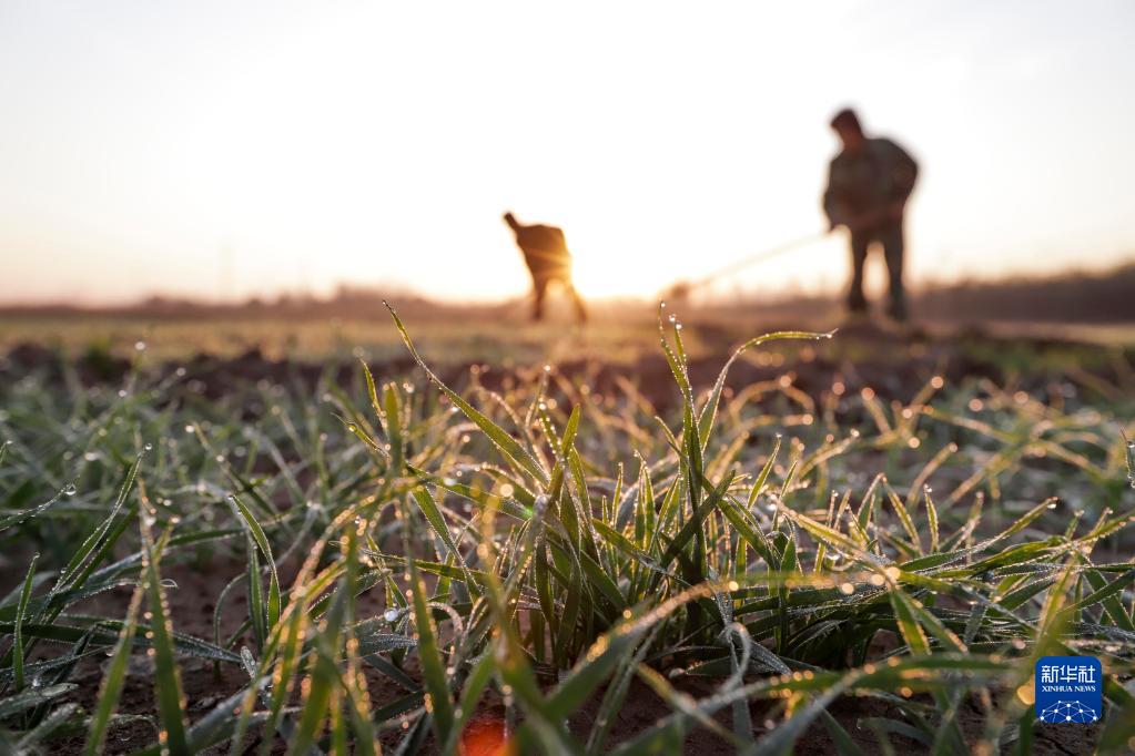 10月23日,河北唐山遵化市东新庄镇后毛庄村的农民在管护麦田。