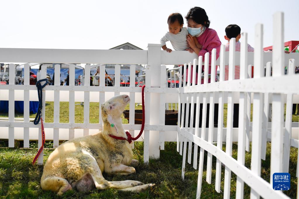 10月23日,游客在练市镇荃步村近距离观看现场展示的湖羊。